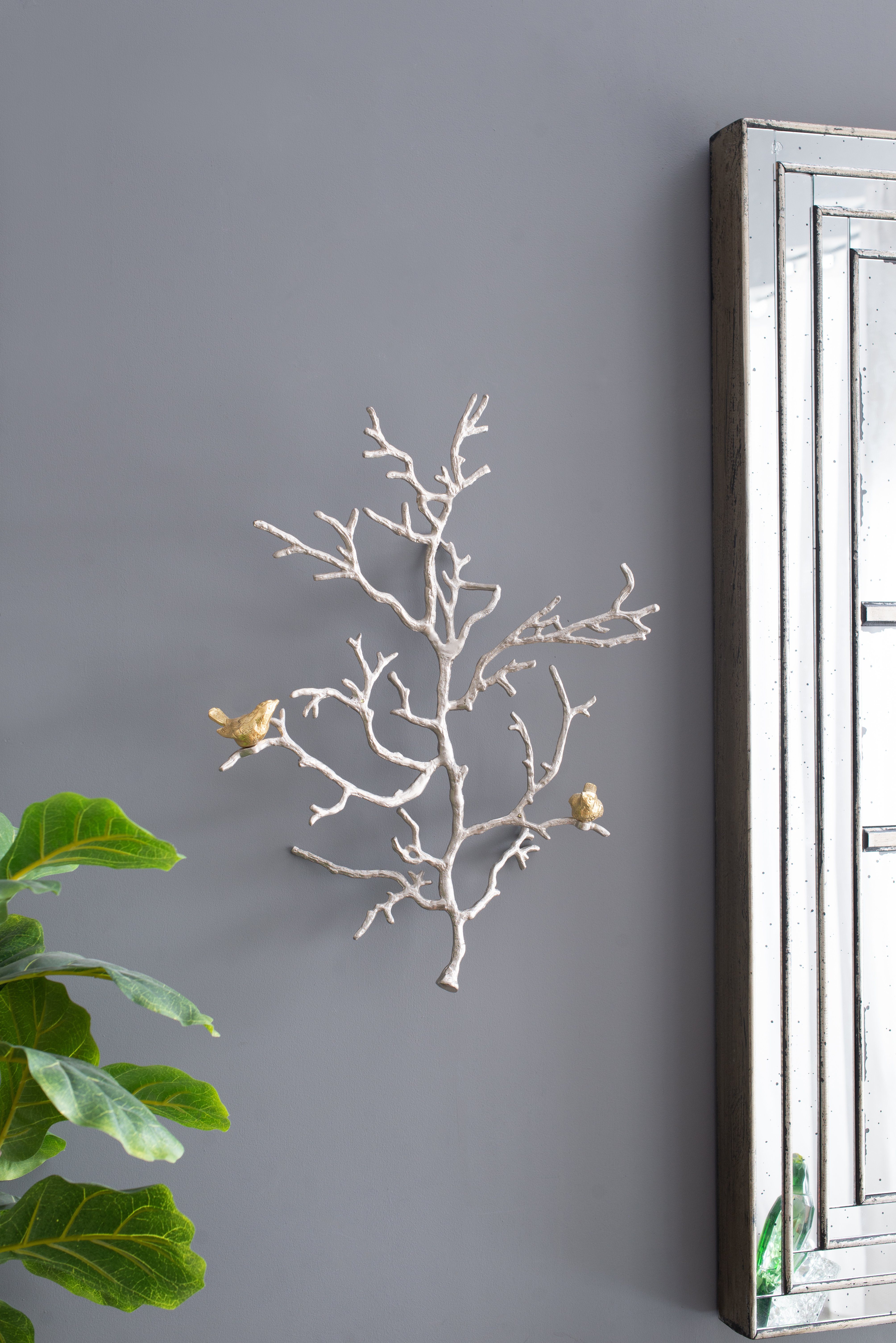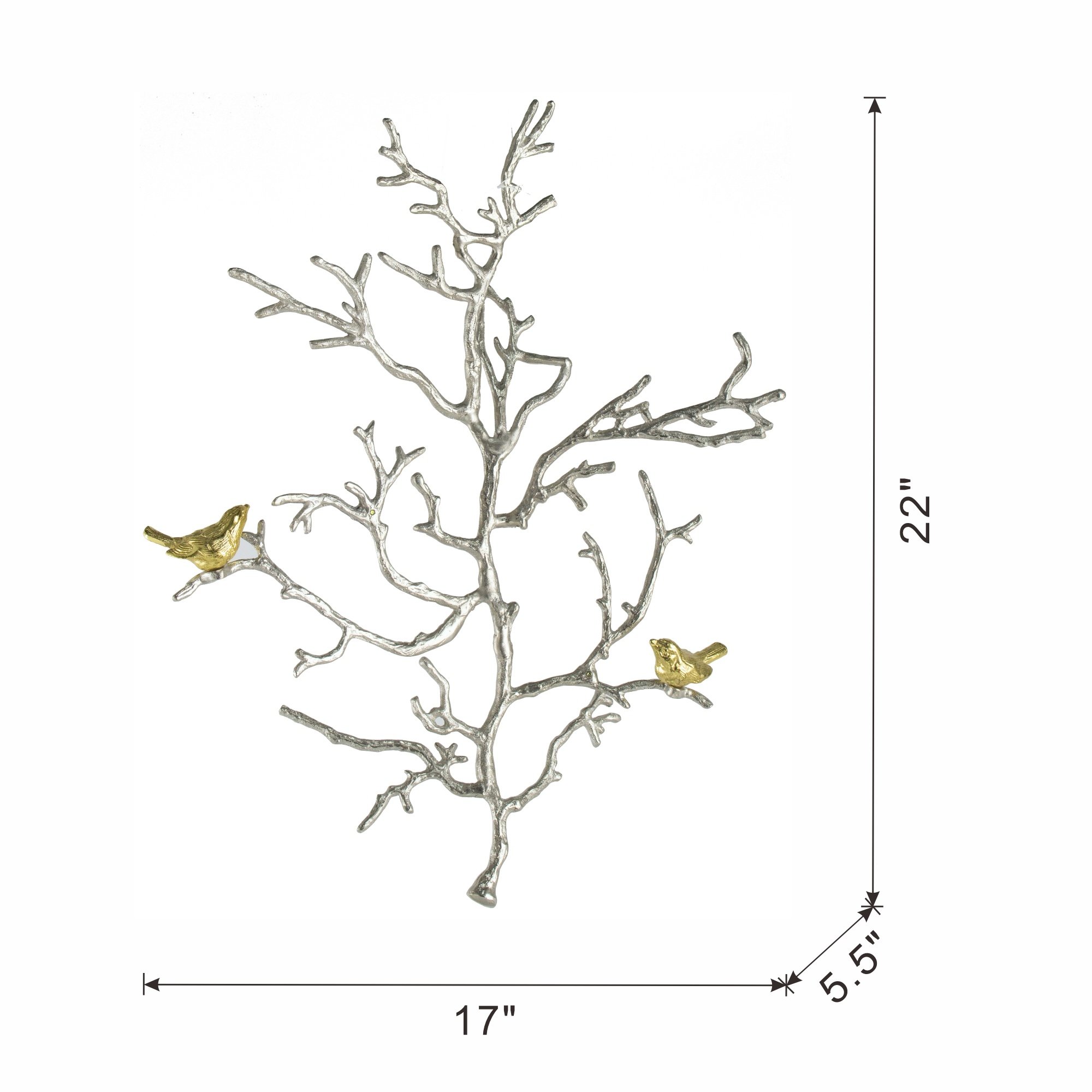 Home > 17x5.5x22" Metal Branch Wall Sculptures with Bird Accents