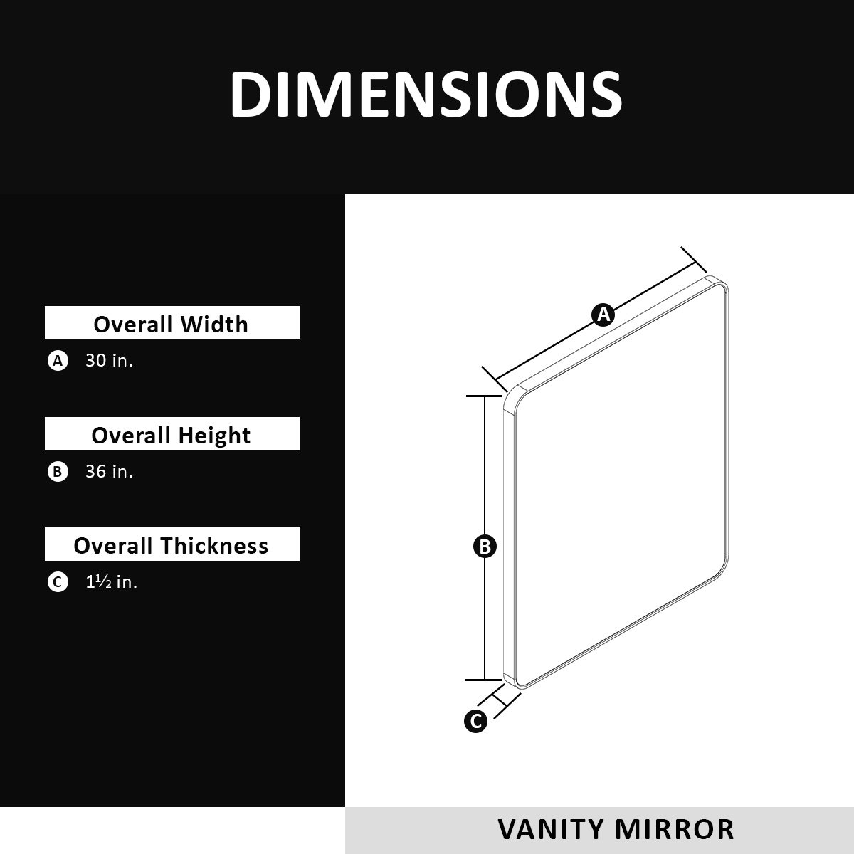 Size: 30 in. W x 36 in. H, tailored size for most bathroom vanities
