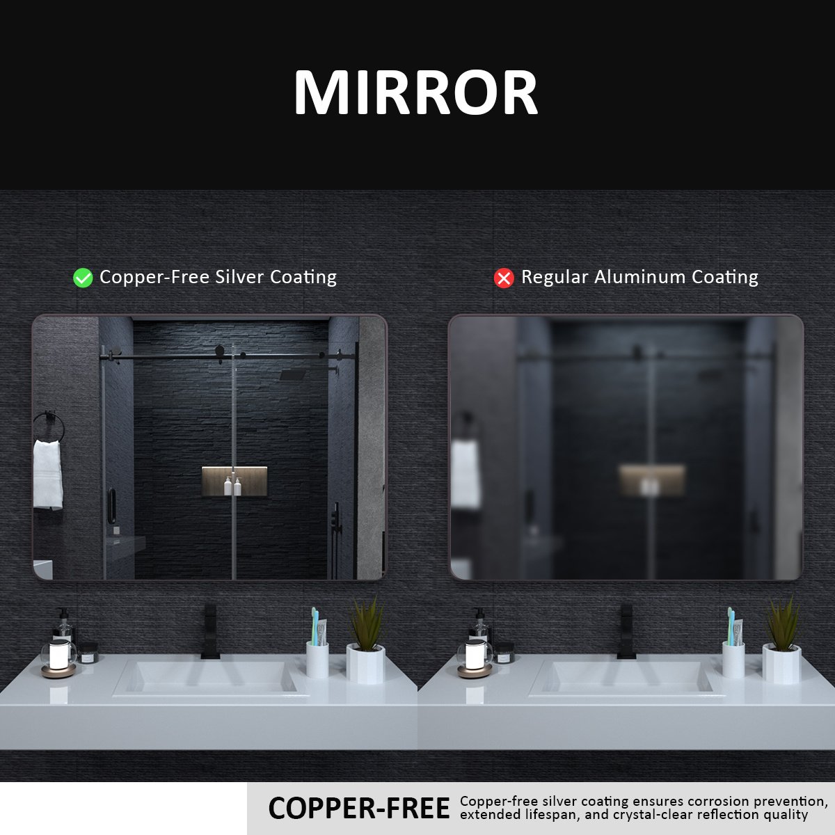 Features 4 mm premium copper-free silver mirror to prevent edge corrosion