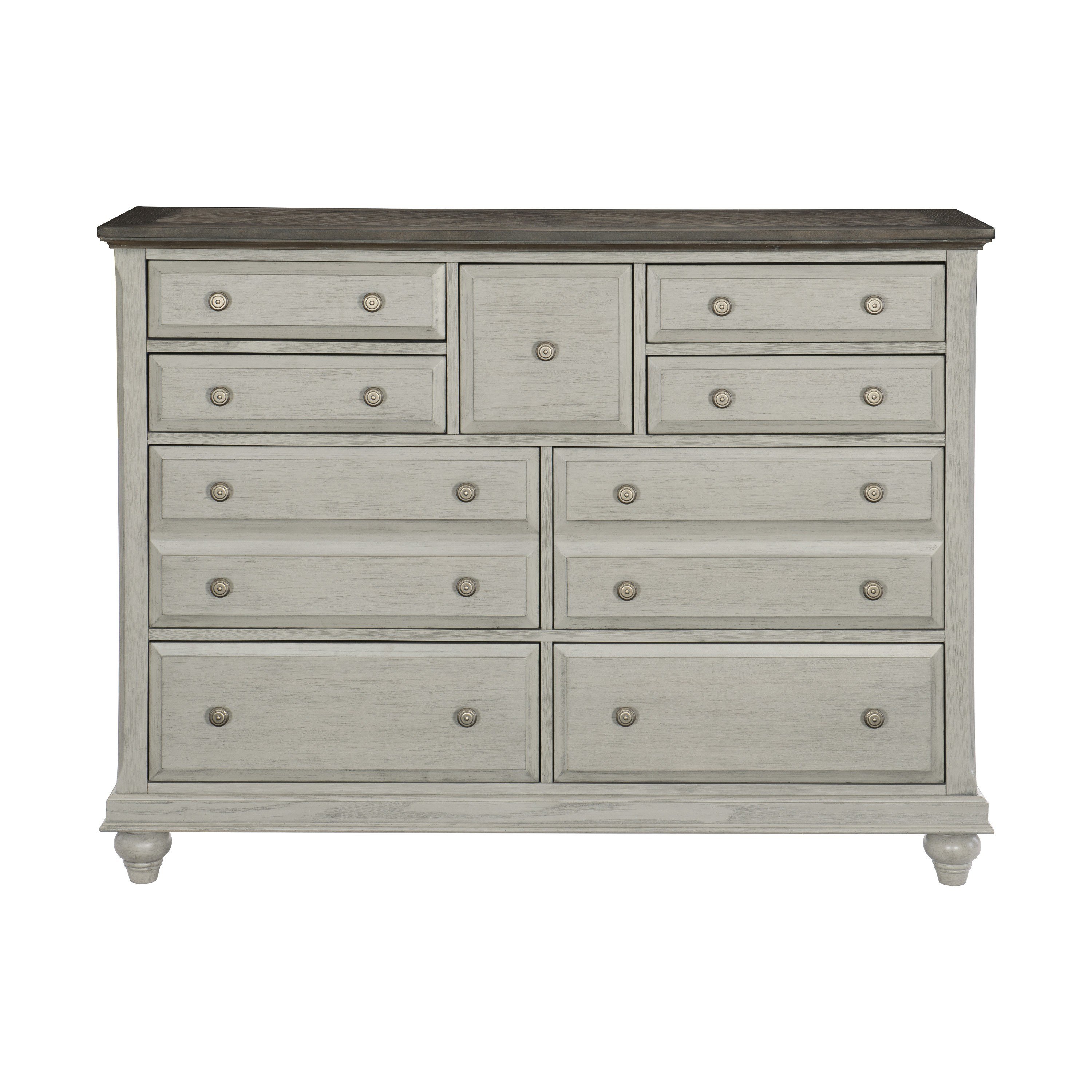 Classic Light Gray Finish 1pc Dresser of 9x Drawers Dark Brown Top Modern Farmhouse Design Bedroom Furniture