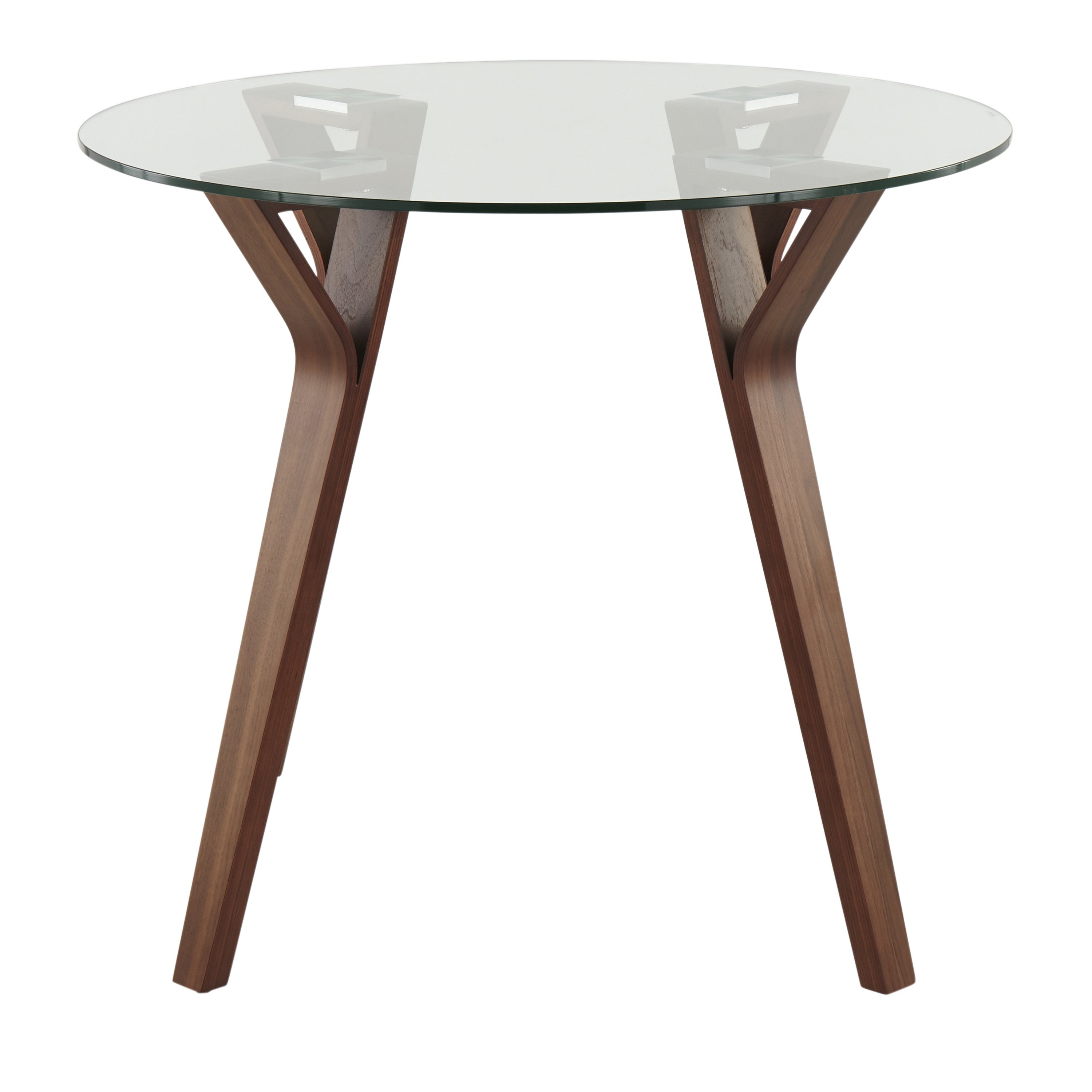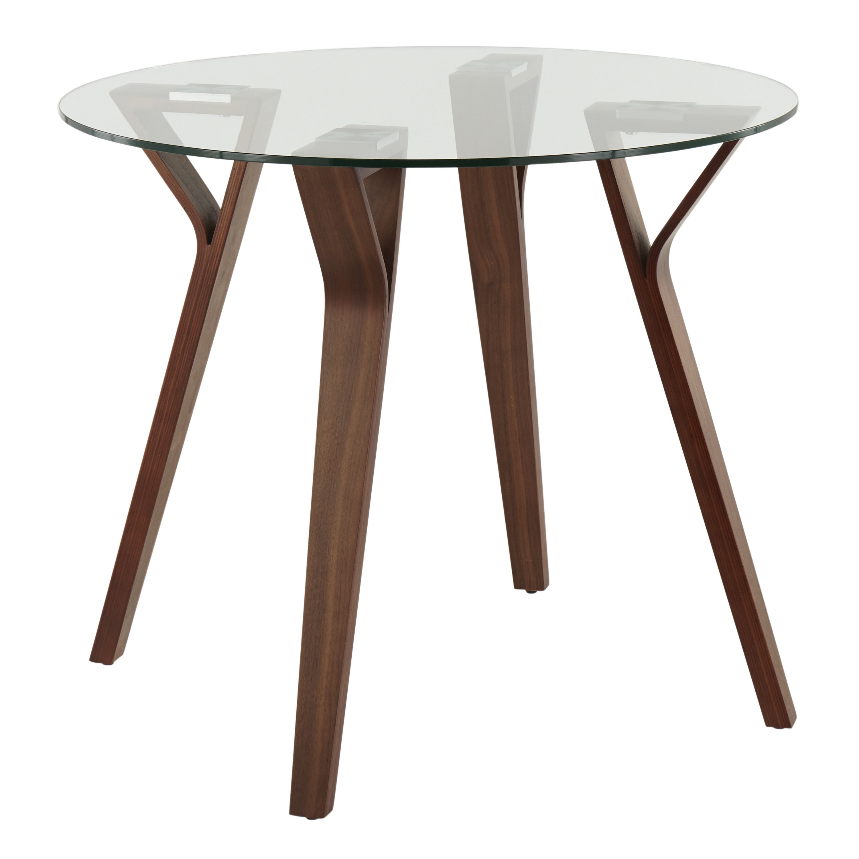 Folia Mid-Century Modern Round Dinette Table in Walnut Wood and Clear Glass by LumiSource