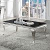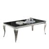 Glam Contemporary1pc Coffee Table Black Glass Top Silver Color Table Living Room Stainless Steel Cabriole-Style Legs