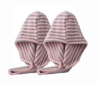 2 Pcs Microfiber Hair Drying Towel Quick Dry Hair Turban for Womens; Pink Grey Stripes