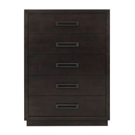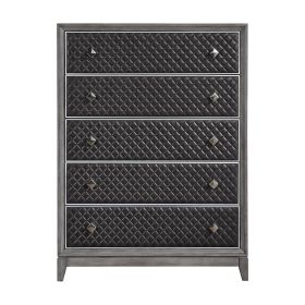 Modern Bedroom Furniture 1pc Chest of 5x Drawers Charcoal Finish Stylish Gunmetal Tone Handles