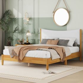 Queen Size Rubber Wooden , Solid Wooden Bed with Teddy Velvet Cushion Upholstered Headboard, Enhanced by Support Feet