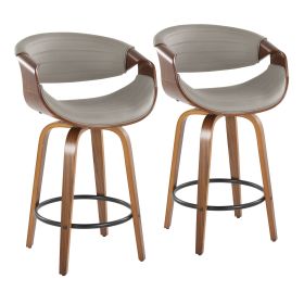 Symphony Mid-Century Modern Counter Stool in Walnut and Grey Faux Leather by LumiSource - Set of 2