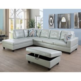 Silver Green Semi PU Synthetic Leather 3-Piece Couch Living Room Sofa Set