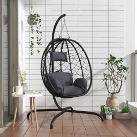 Egg Chair Cushion Hanging Basket Seat Cushion Thicken Soft Egg Swing Chair Pad Hanging Egg Chair Cushion with Headrest (Color: Coffee)