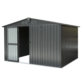 Outdoor Storage Shed 10'x 8', Metal Garden Shed for Bike, Trash Can, Tools, Galvanized Steel Outdoor Storage Cabinet with Lockable Door for Backyard