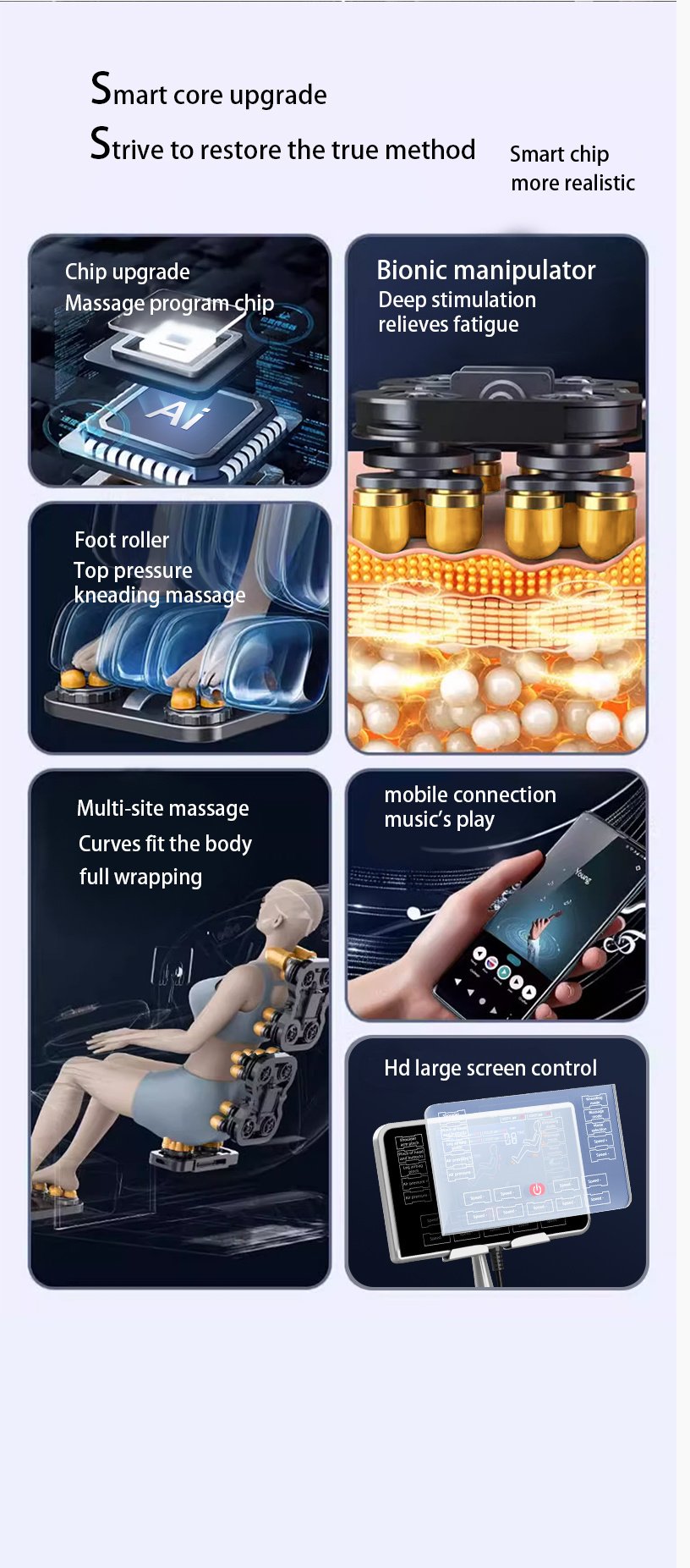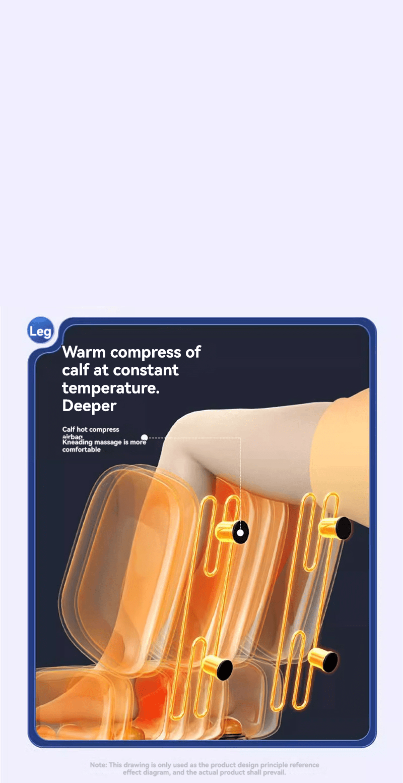 Whole body airbag wrapping massage: shoulders, arms, legs, feet; Waist and leg hot compress: waist and leg large area hot compress function; Foot roller gua sha massage, the legs are retractable, suitable for different people