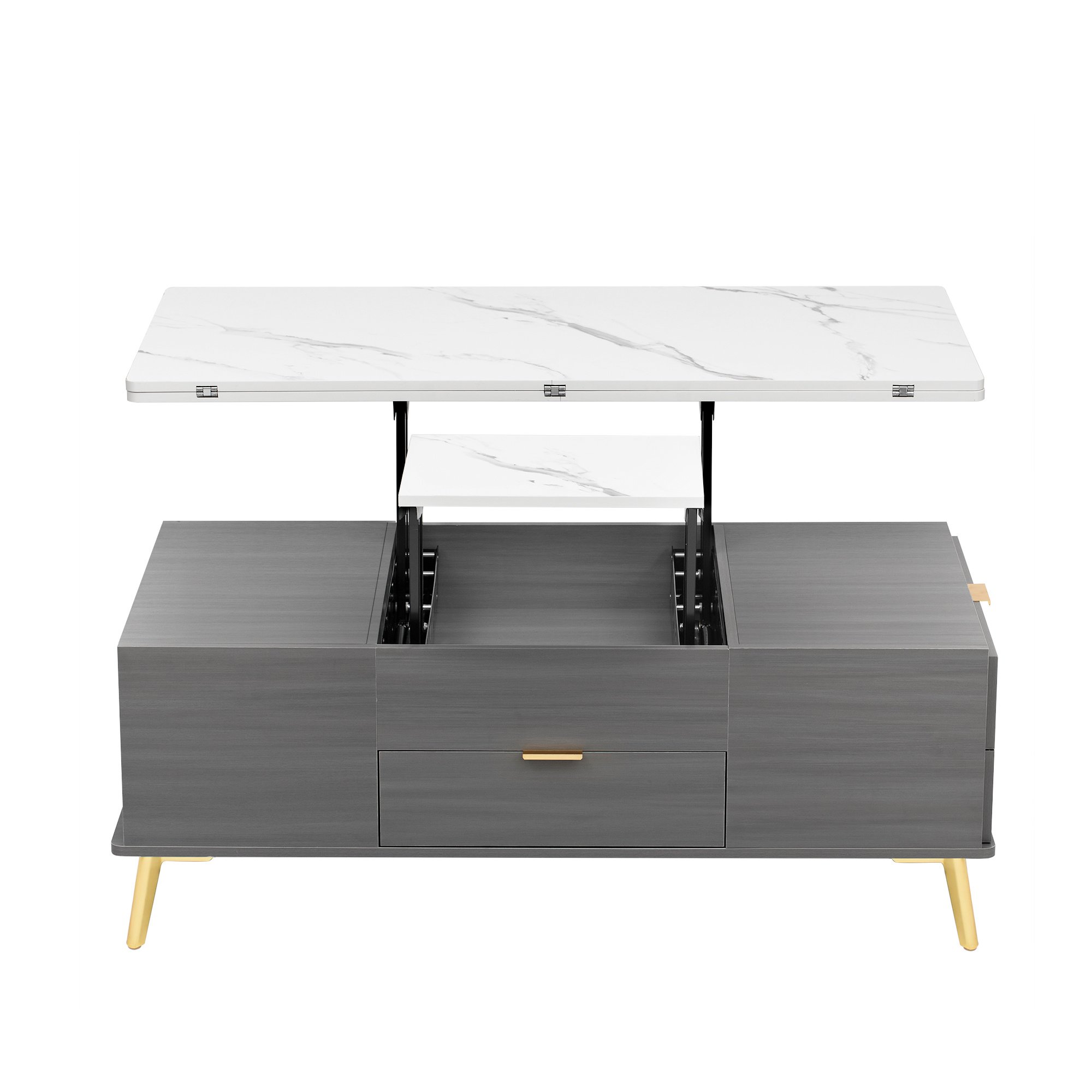 Modern Lift Top Coffee Table Multi Functional Table with Drawers in Gray & Marbling