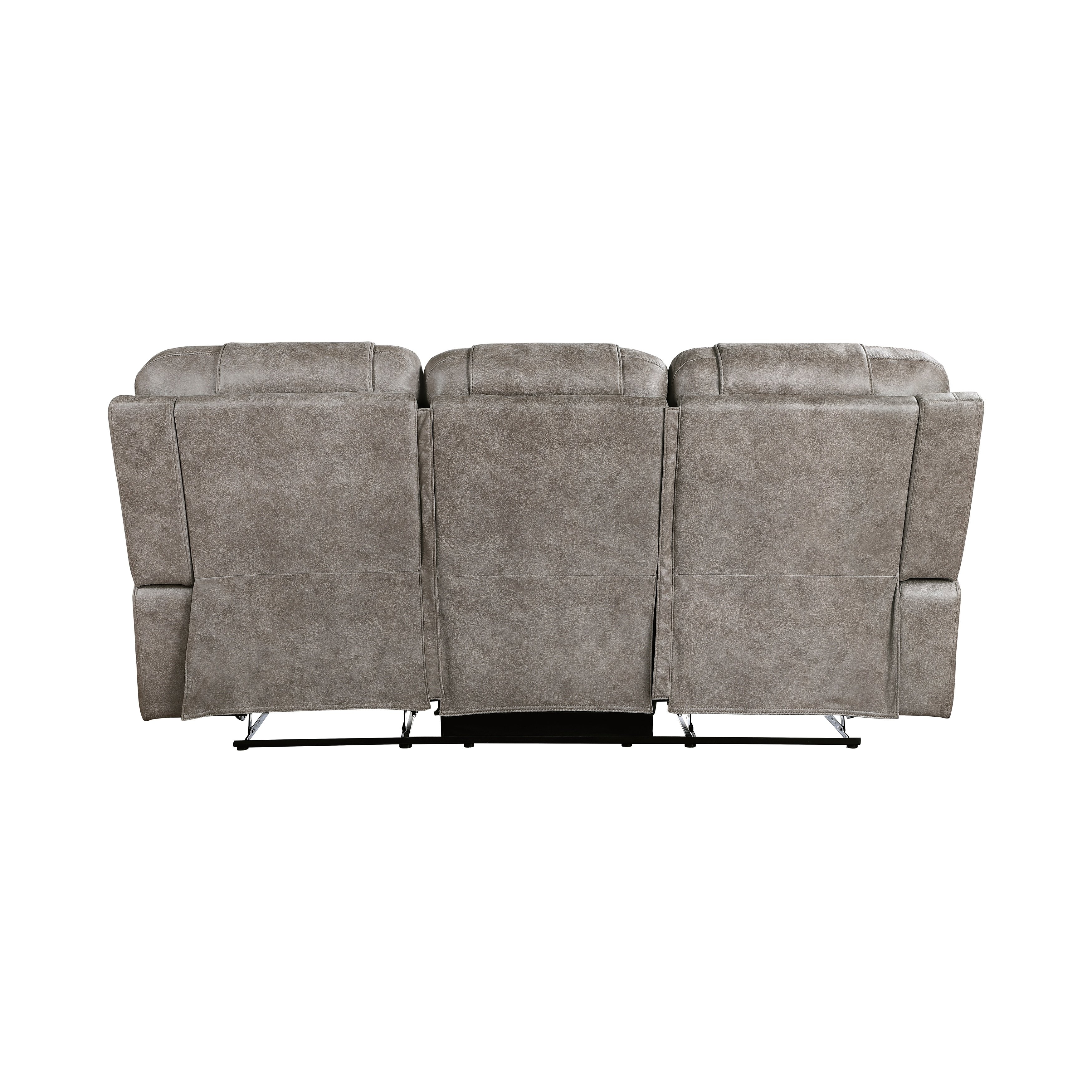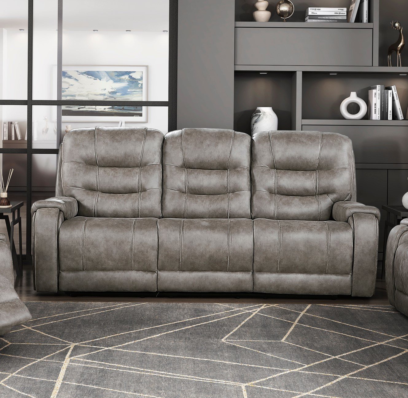 A subtle modern profile is combined with plush seating to create the design of the Oberon Collection. The sofa features dual reclining ends. Manual motion mechanisms allow for your reclined experience and are engaged with a pull of the side mounted tab. Grayish-brown polished microfiber covers the collection, its neutral hue offering a warm balance to your living room's décor.PRODUCT DIMENSIONS: Overall Dimension: 87" x 39" x 43"HSeat Width: 70"Seat Depth: 21"Seat Height: 20"Arm height: 24.5"Fully reclined length: 66.5"Fully reclined height: 34"Required back clearance to recline: 3"Doorway width: 25"Listing Includes: One Reclining Sofa (Dual Reclining ends) Only.Loveseat and Chair: Not includedSimple Assembly Require