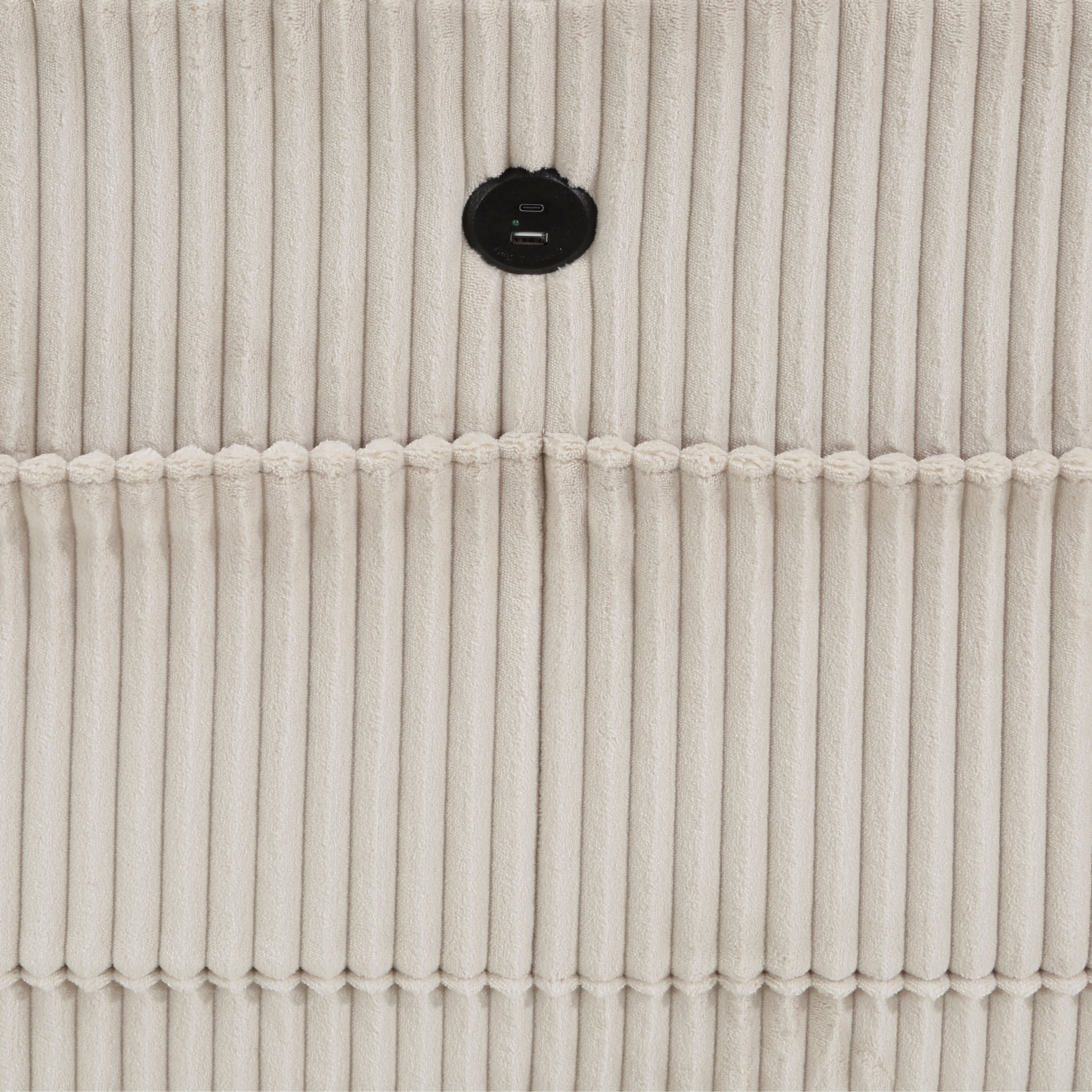Home > Modern Living Room Furniture 1pc Beige Chair with One Arm, Storage Pouch and Charging Ports Corduroy Fabric Upholstery