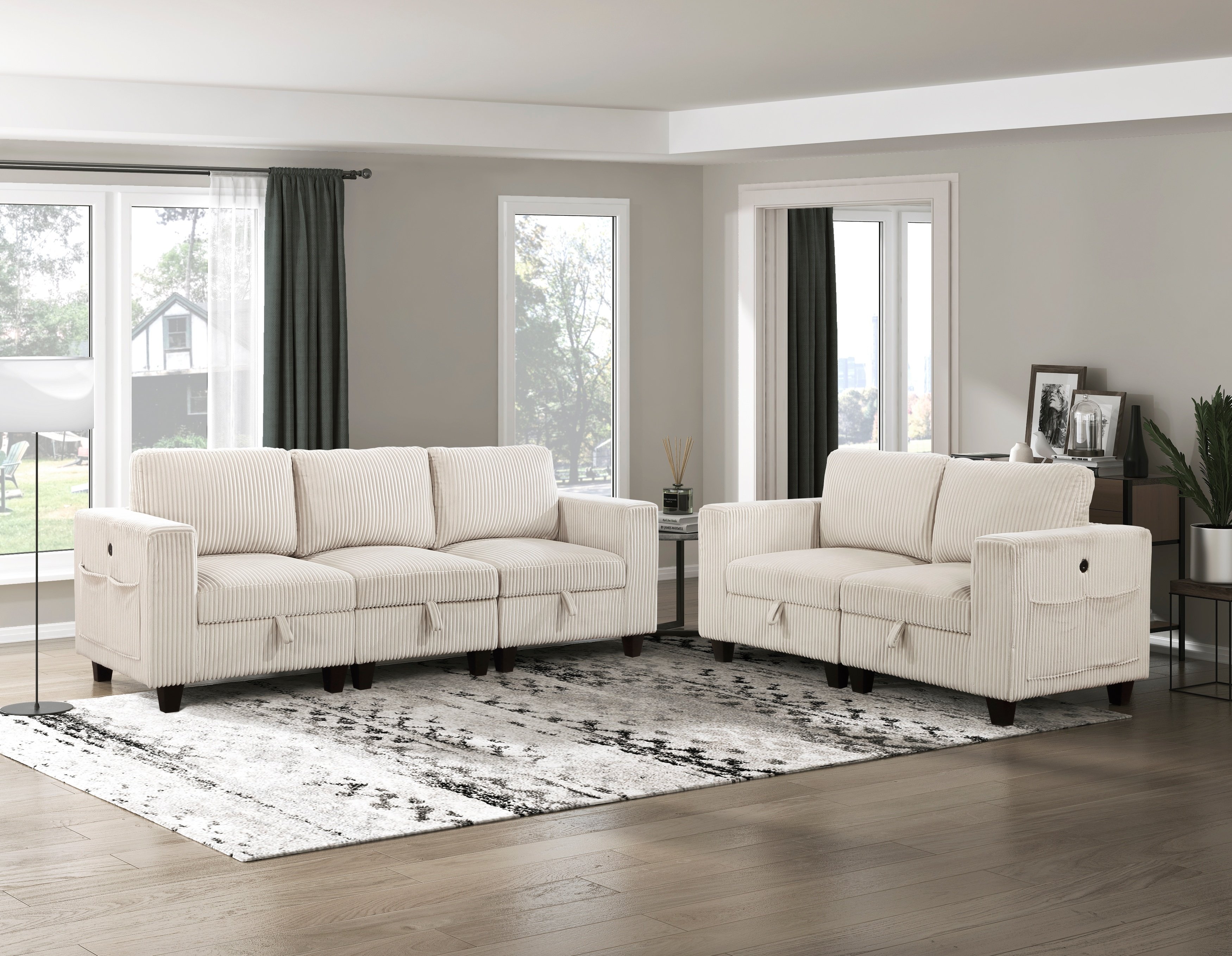 Chair with One Arm, Storage, Storage Pouch and Charging PortsPRODUCT DIMENSIONS: Overall Dimension: 32" x 31.5" x 35.5"HListing Includes: One One-Arm Chair Only.Armless chair and Corner seat: Not includedSimple Assembly RequireYOU CAN CREATE MANY VARIATIONS OF MODULAR SECTIONALS/SOFA SETS GIVEN IN IMAGES.