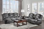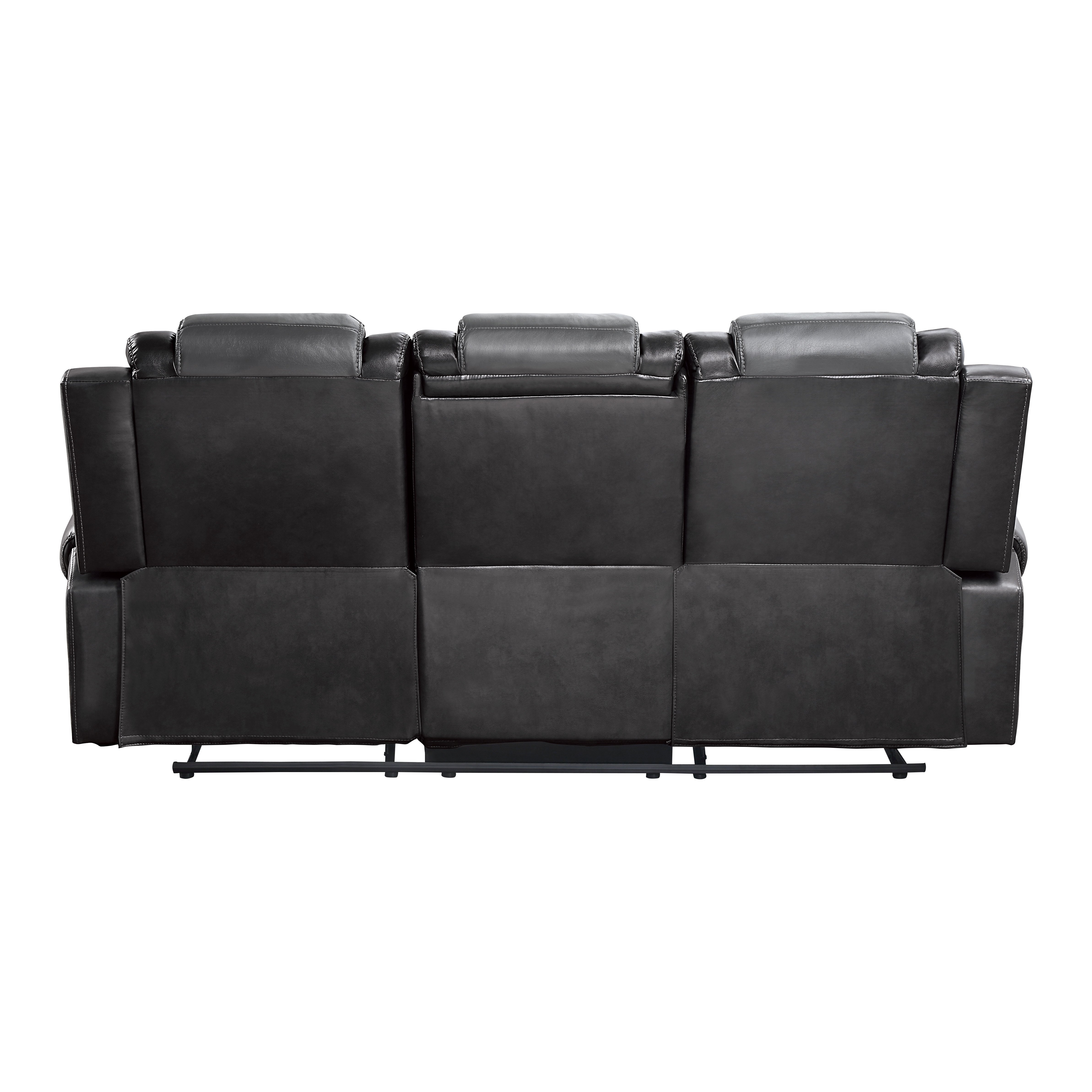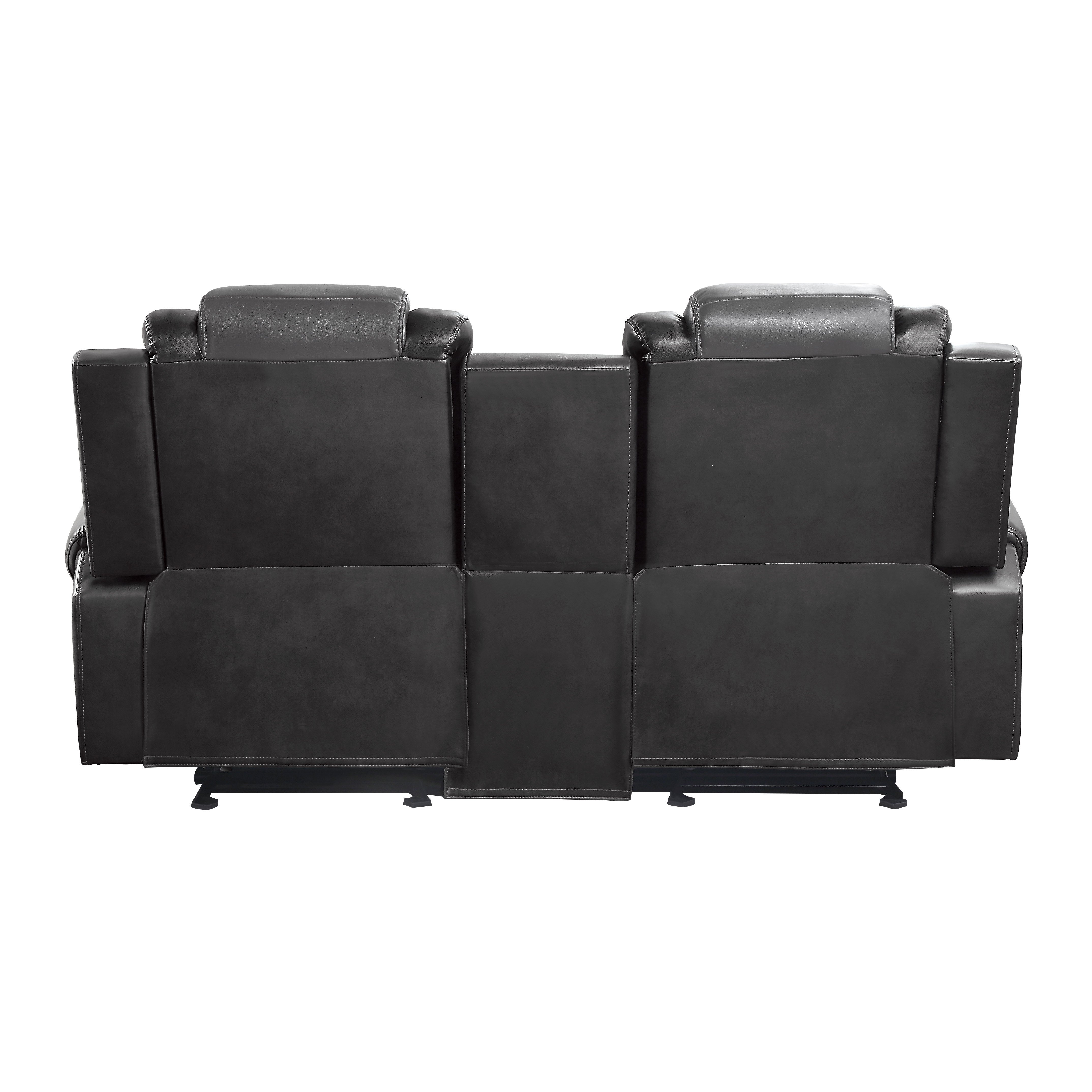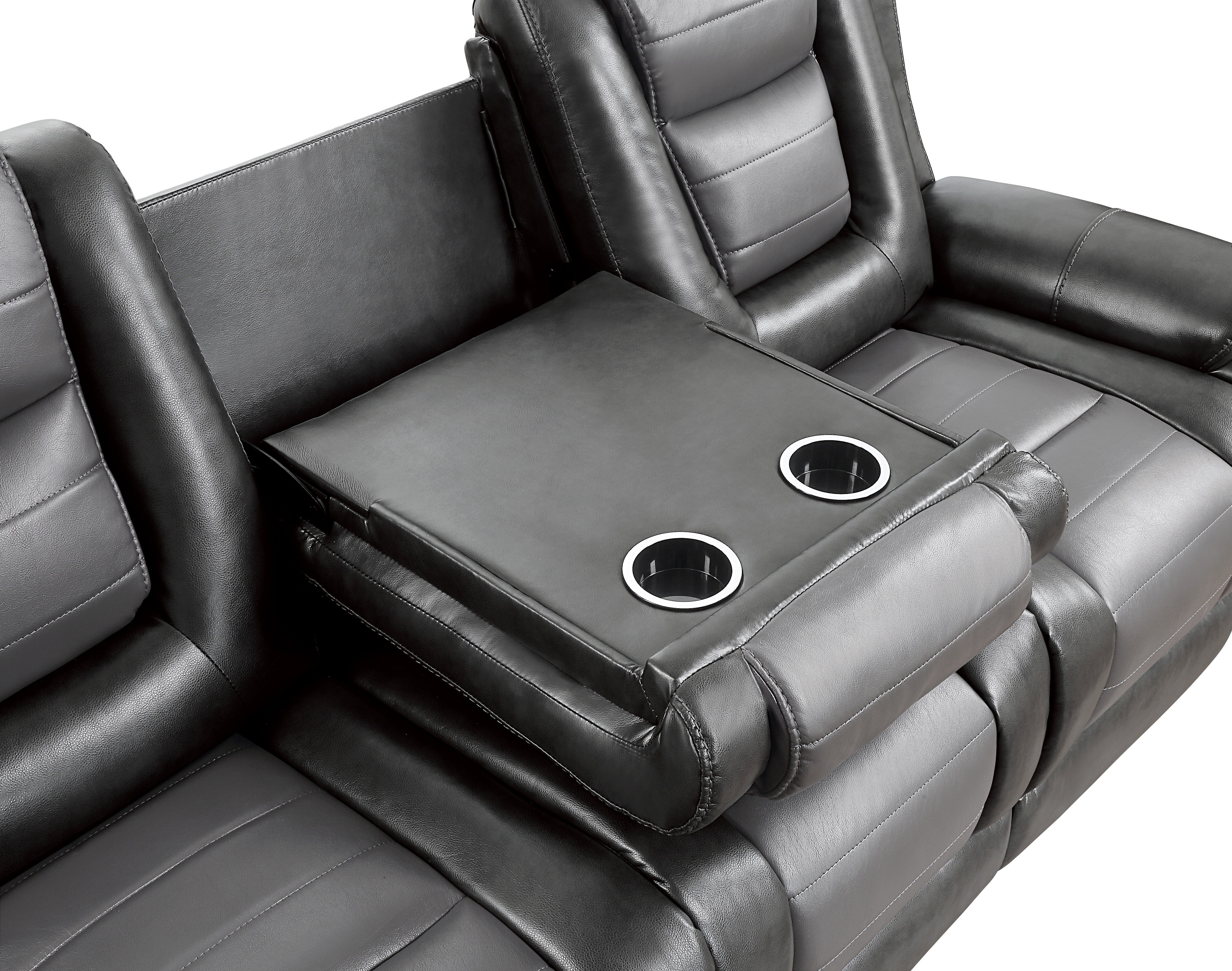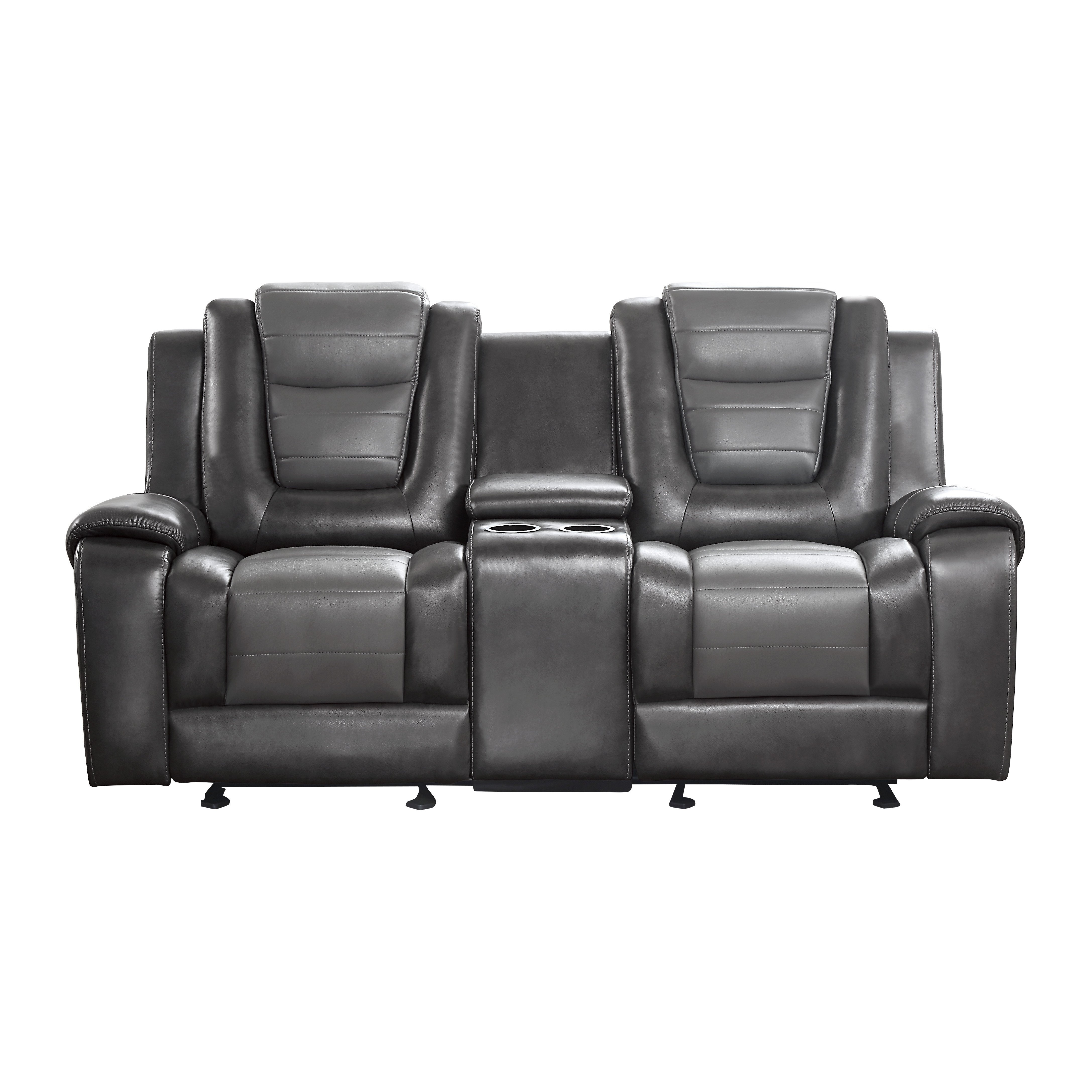 With well-appointed features that create not only a comfortable seating experience but a functional one as well, the Briscoe Collection will be a welcome addition to your home. The gray premium faux leather covering creates a style that will blend effortlessly with your transitional decorative preference. The sofa features dual glider reclining ends and a drop down center seat back with cup-holders and tabletop, the dual glider reclining ends of the love seat – with center console featuring cupholders and storage.PRODUCT DIMENSIONS: Double Reclining Sofa with Center Drop-Down Cup Holders: 85.5" x 39" x 40"HDouble Glider Reclining Love Seat with Center Console: 76" x 39" x 40"HListing Includes: 2pc Reclining Sofa Set (Sofa and Loveseat) Only.Chair & Center-table: Not included.Simple Assembly Require