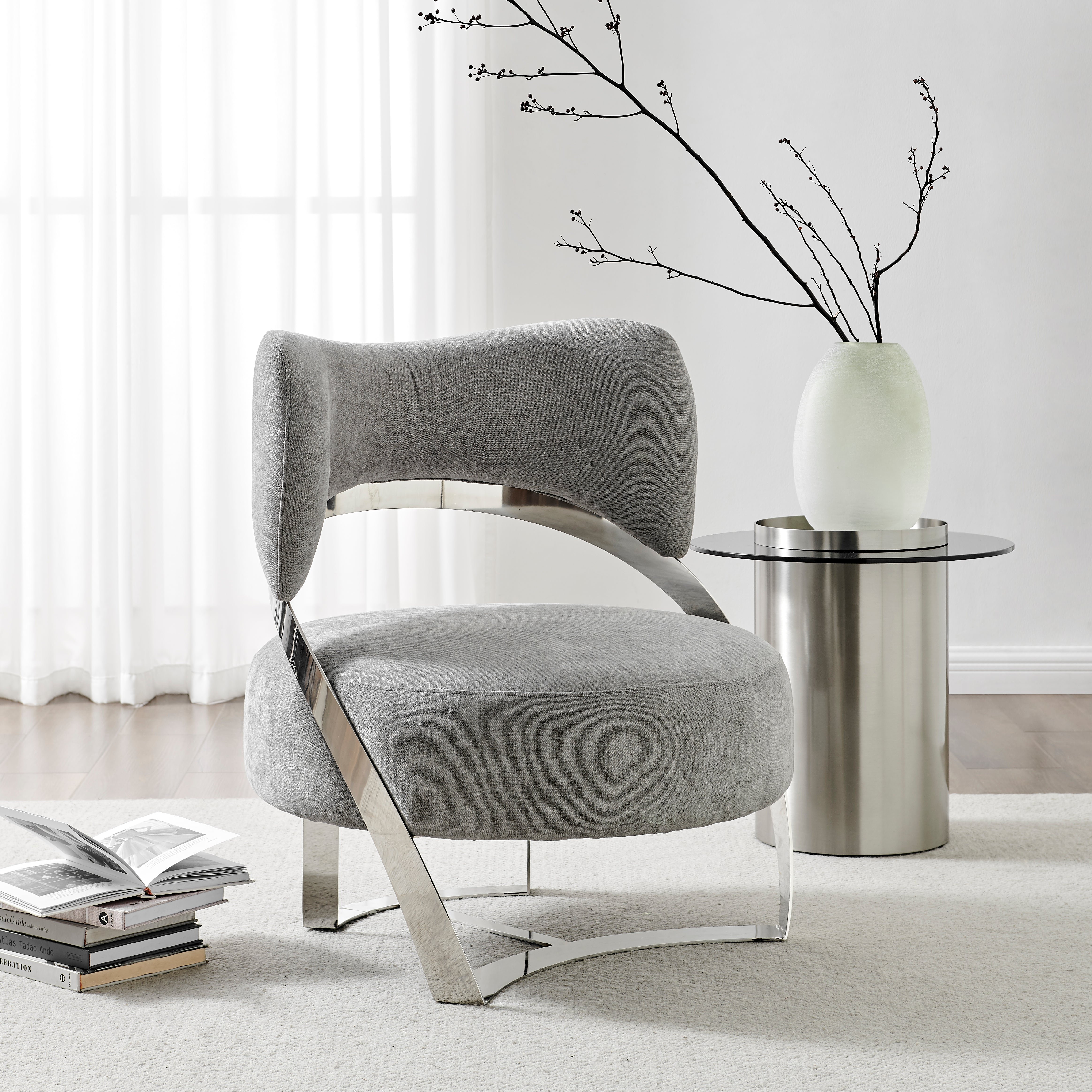 Designed for comfort and versatility, this accent chair is equally at home in living rooms, entryways, and bedrooms. Its modern aesthetic, coupled with the luxurious gray upholstery and chrome detailing, creates a harmonious blend of comfort and style. Elevate your space with the Aura Modern Comfort Accent Chair for a contemporary look that doesn't compromise on coziness.