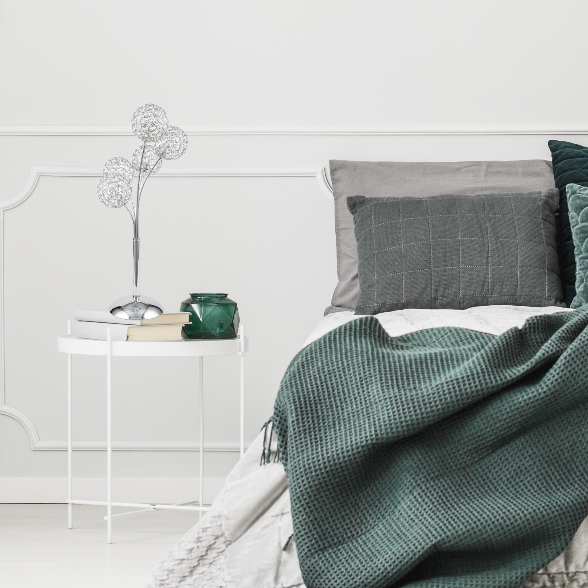 This Thailand Crystal Domes Table Lamp is adorned by five crystal and chrome domes. Its beautiful and modern presence will fill any room with warmth and elegance along with a creative Finesse Decor touch.