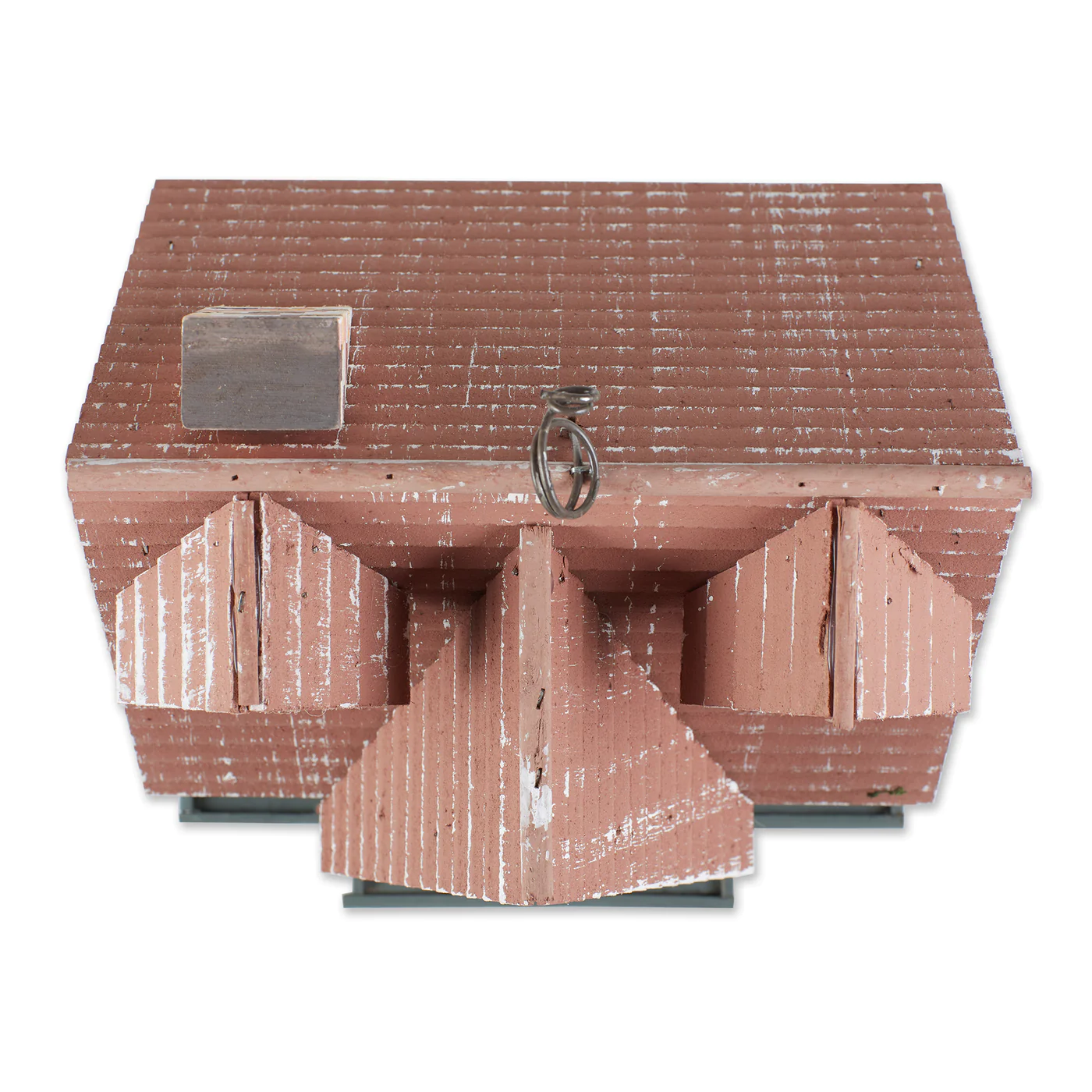 • To clean your garden birdhouse, remove out of season nesting materials through the hole in the back and wipe with a damp cloth as needed.