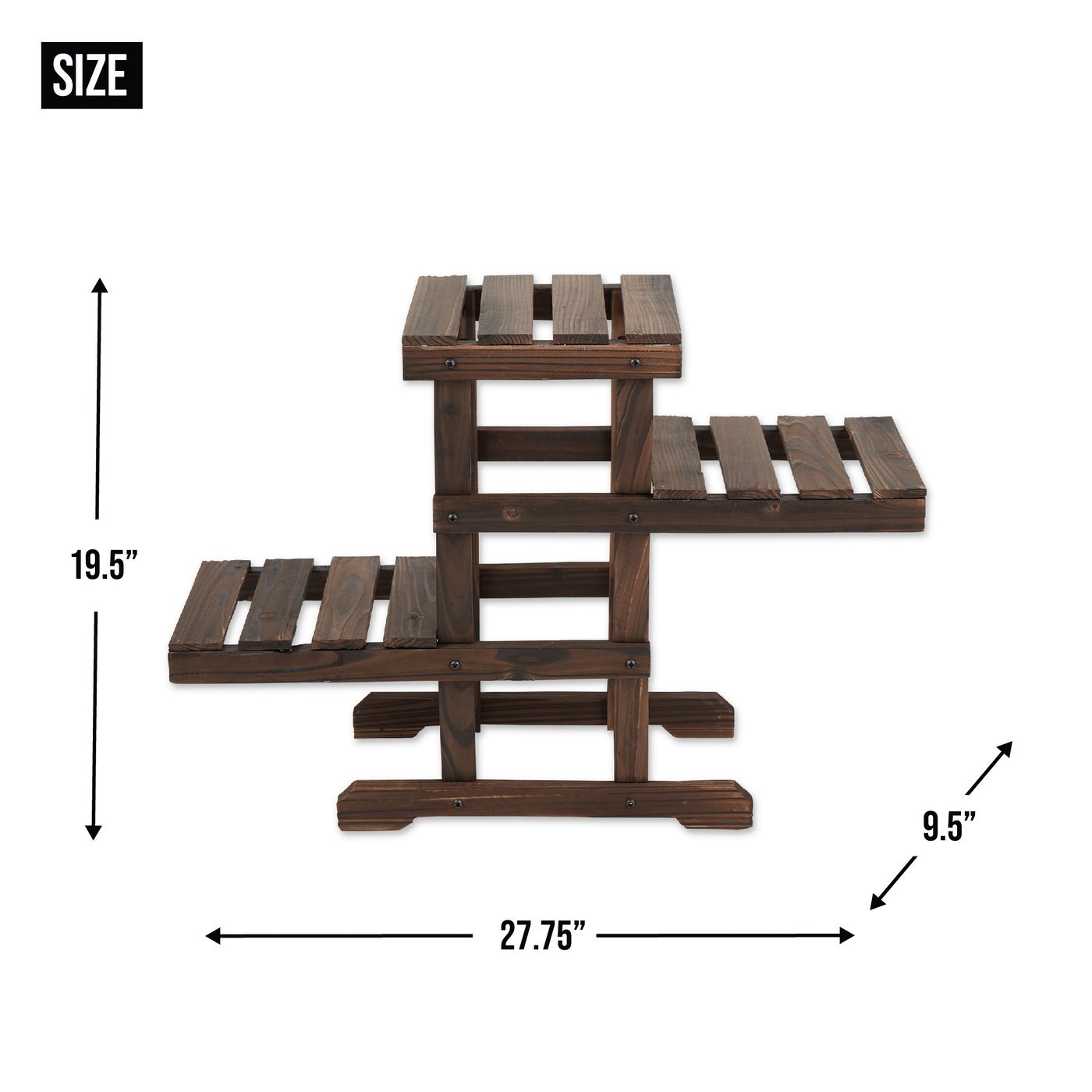 • This beautiful wooden plant stand is ready to enhance and display three of your favorite potted plants. With a zigzag podium design, this piece will liven up your greenery wherever you decide to put it!
