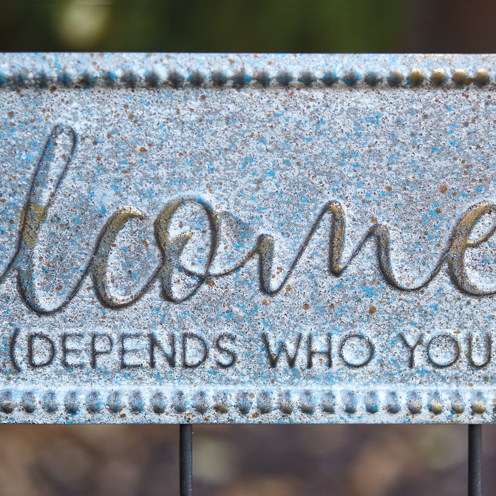 Featuring the phrase ''Welcome-ish… Depends who you are,'' this garden stake will be sure to capture many laughs. It’s the perfect sign for introverts, homebodies, and people who love a good chuckle. This item is crafted from metal.