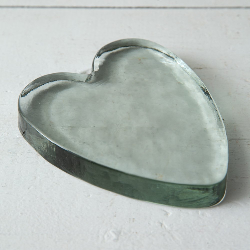 Our heart is exploding with love for this Blocked Glass Heart. The organic handmade nature of the glass is a unique and charming feature. Use as a paperweight on a desk.