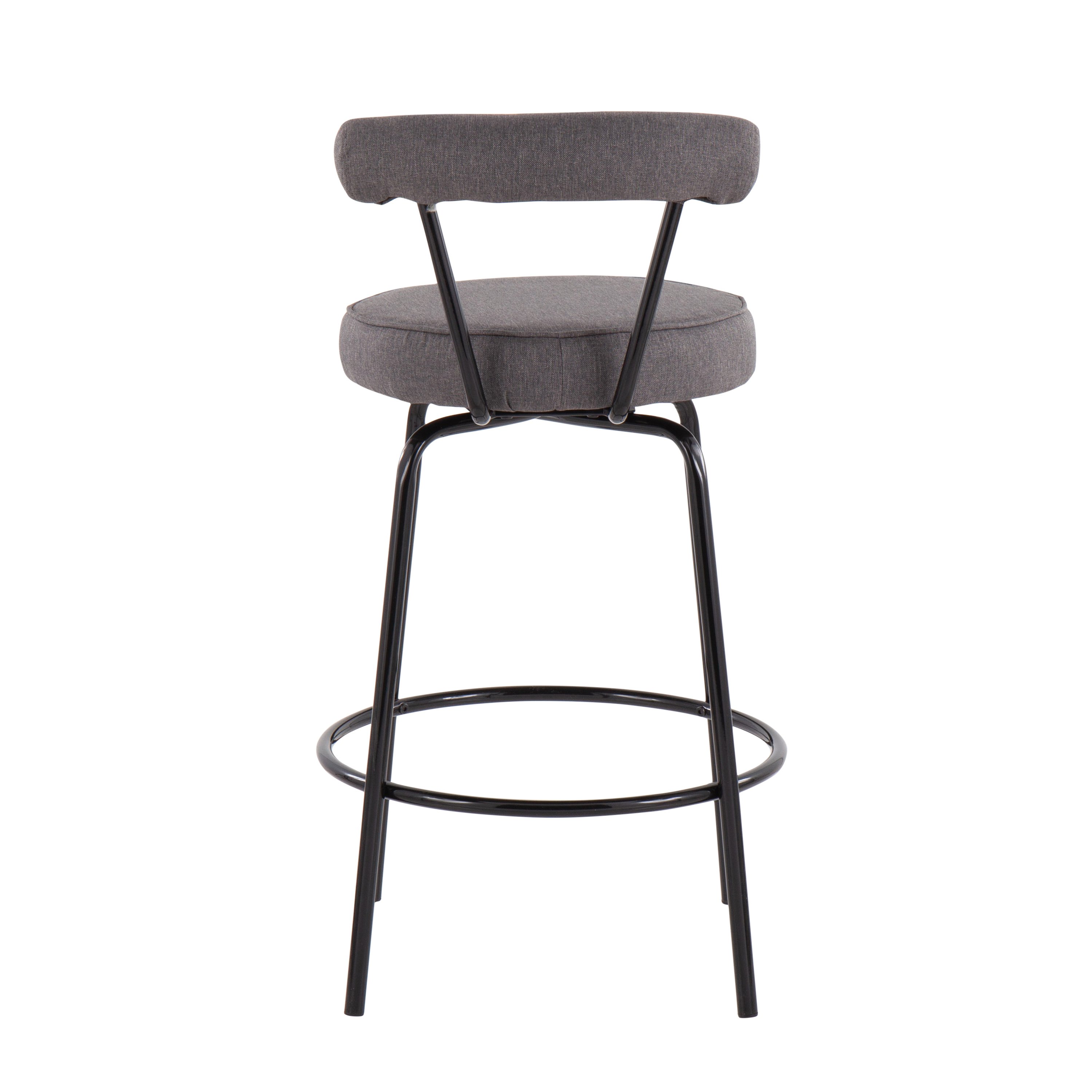 Rhonda Contemporary Counter Stool in Black Steel and Charcoal Fabric by LumiSource - Set of 2