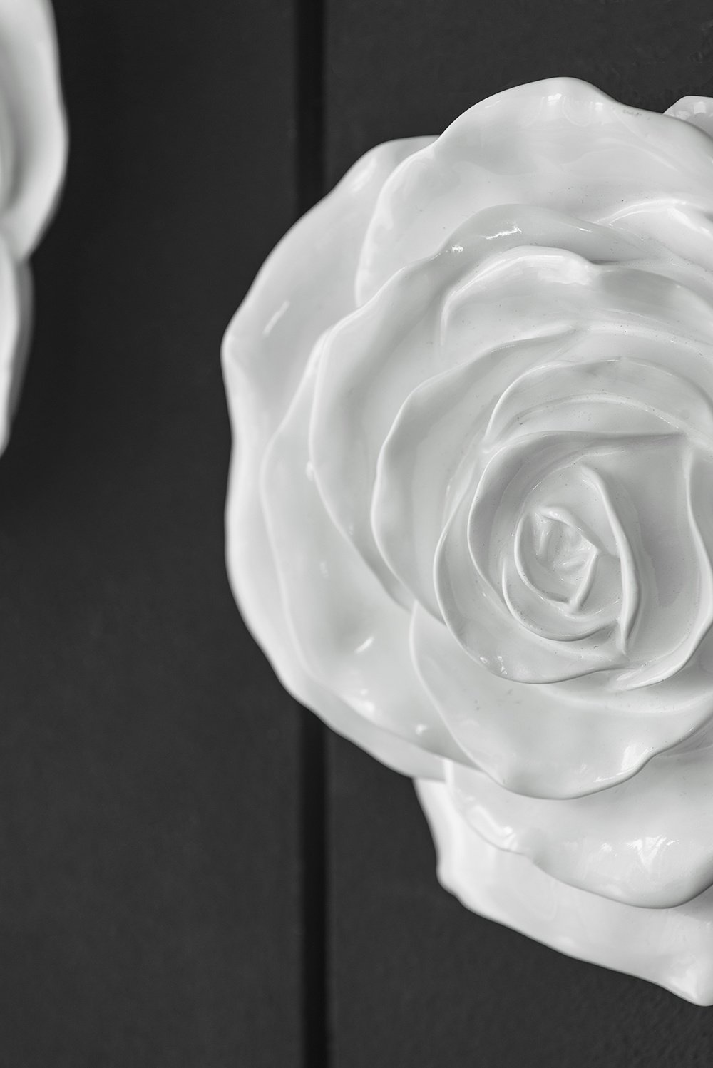 Breathing new life into traditional floral wall art, this set of two decorative roses boasts a rich white hue and intricate details across the petals.