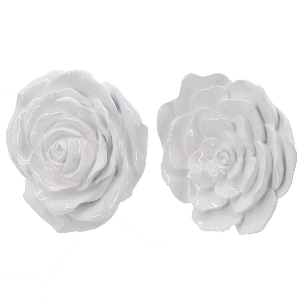 Breathing new life into traditional floral wall art, this set of two decorative roses boasts a rich white hue and intricate details across the petals. Offering great versatility, each rose could be placed side by side to create an alluring focal point, or they could be separated to spread a consistent theme in your living room, hallway, or bedroom.