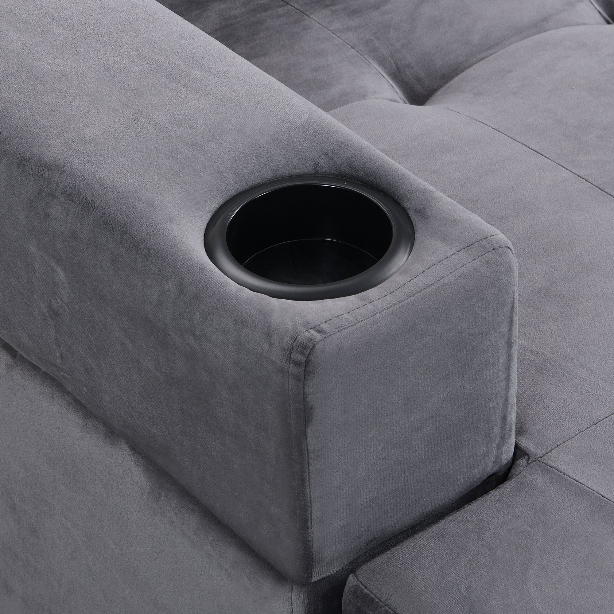 Sofa with Left Hand storage Chaise and two cup holders (Gray)