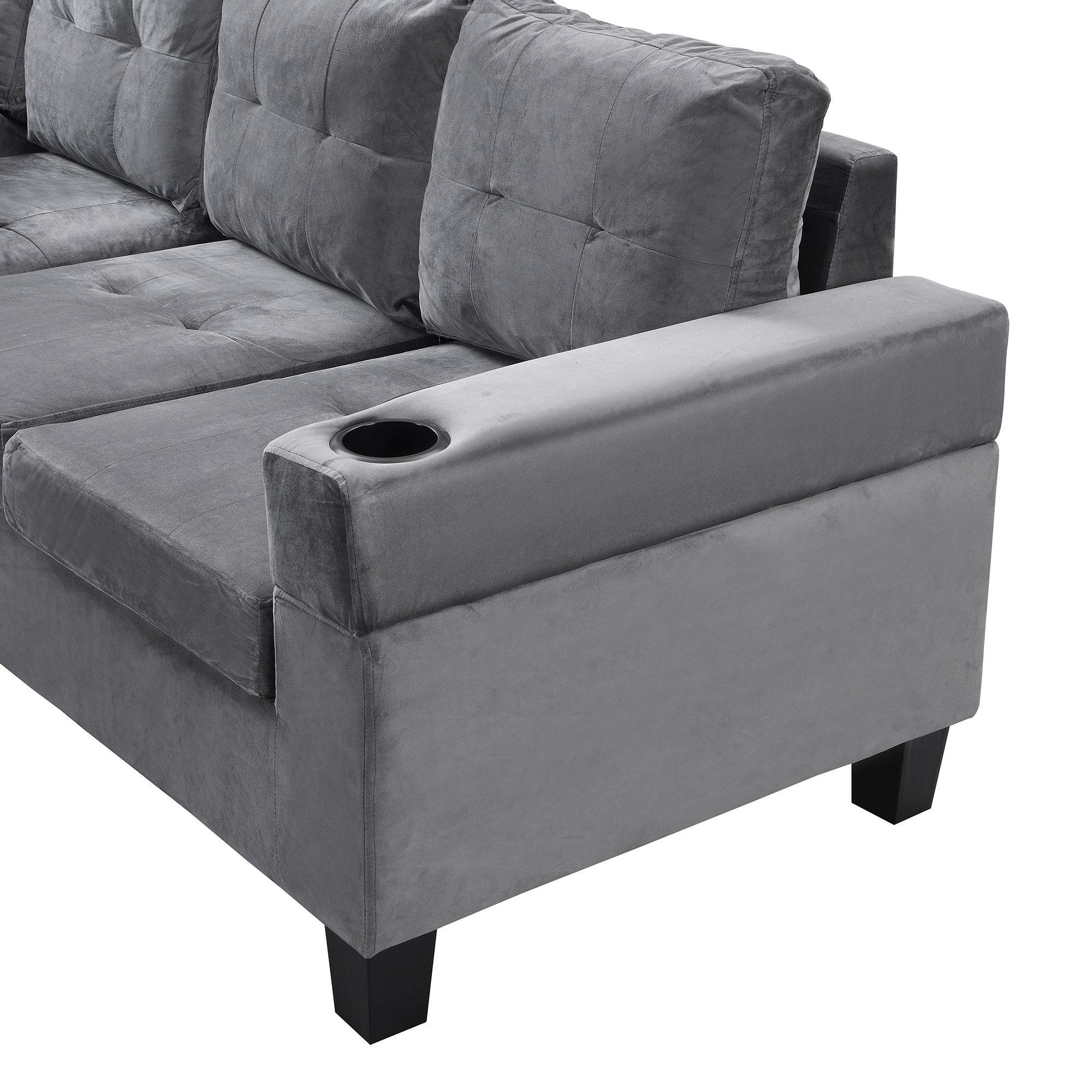 Home > Sectional Sofa Set for Living Room with L Shape Chaise Lounge ,cup holder and Left Hand with Storage Chaise Modern 4 Seat (Grey)