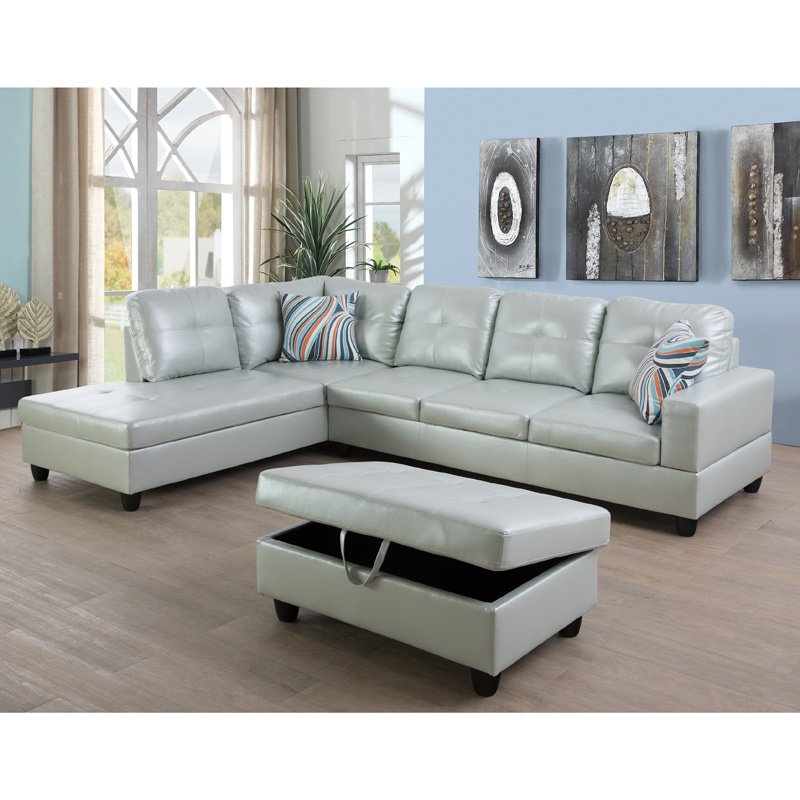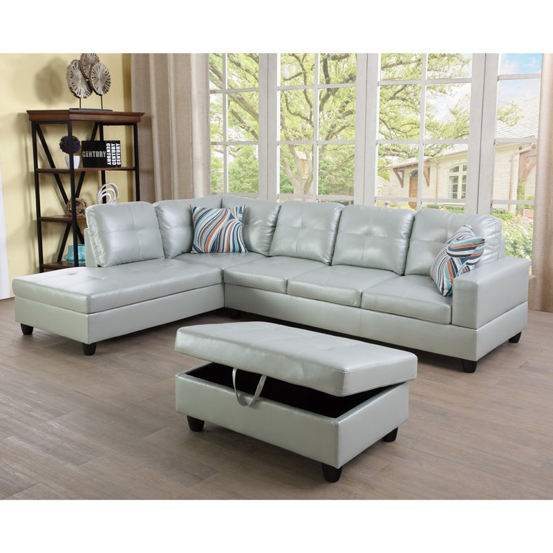 Silver Green Semi PU Synthetic Leather 3-Piece Couch Living Room Sofa Set