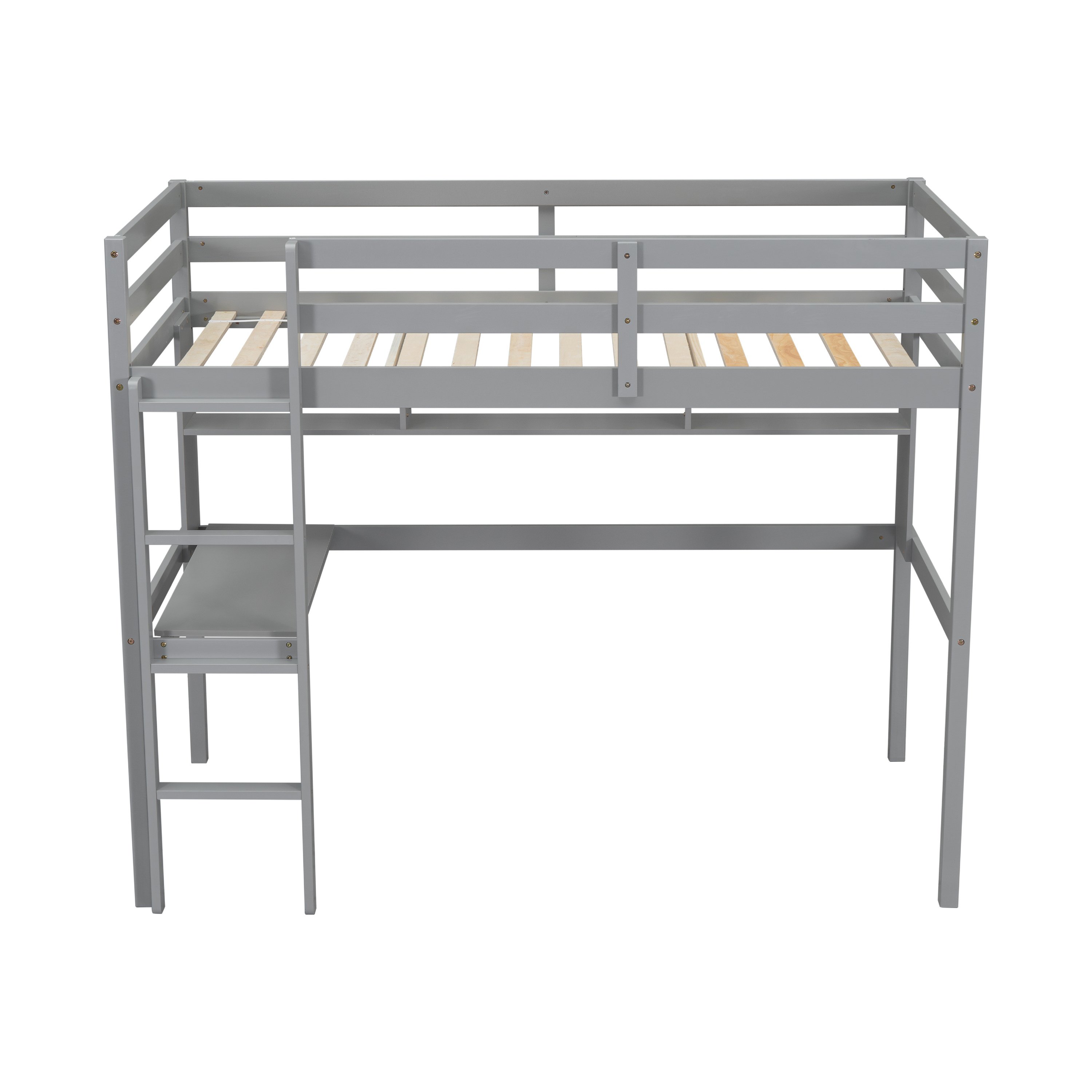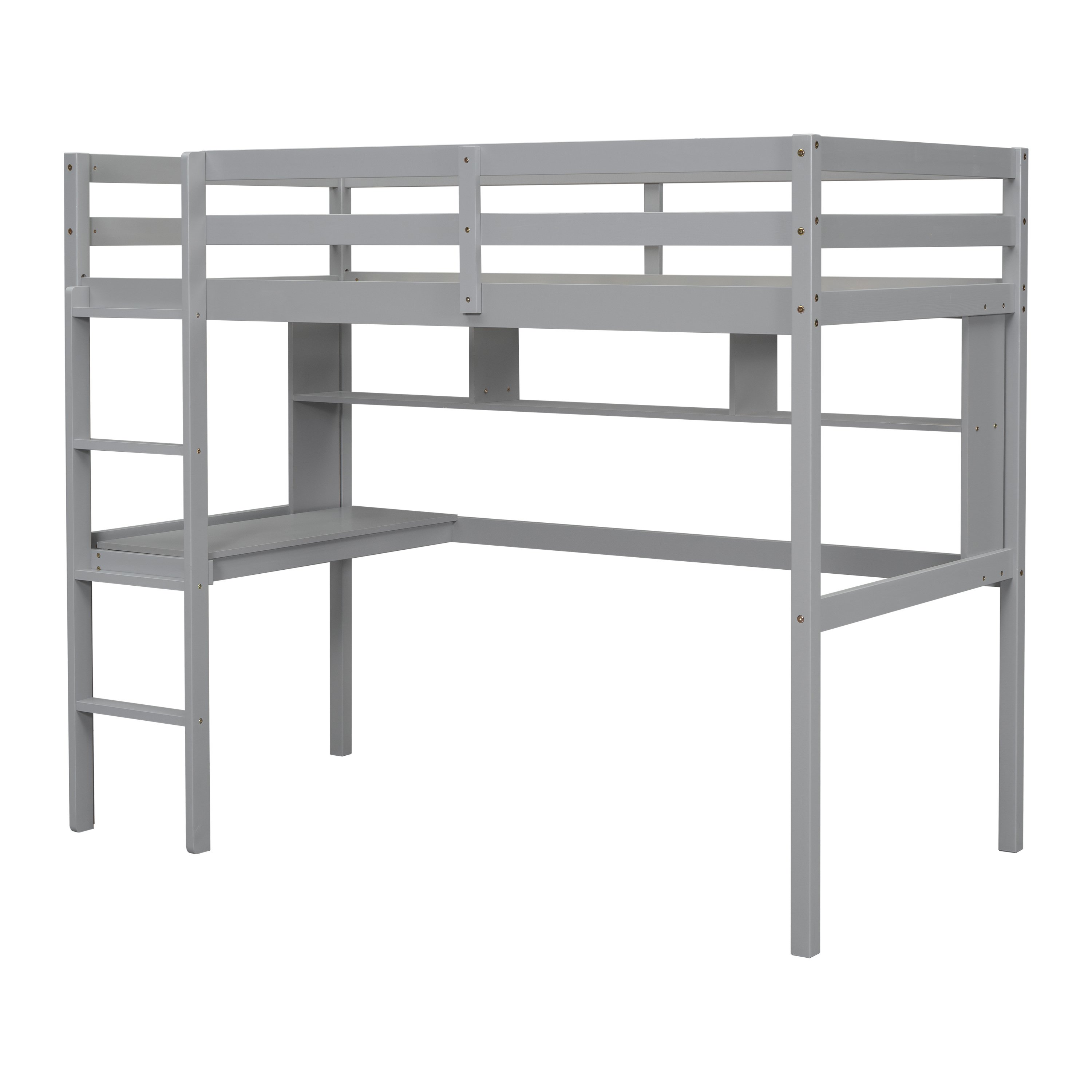 Twin Loft Bed with built-in desk and bookcase of three compartments, Guardrails and Ladder