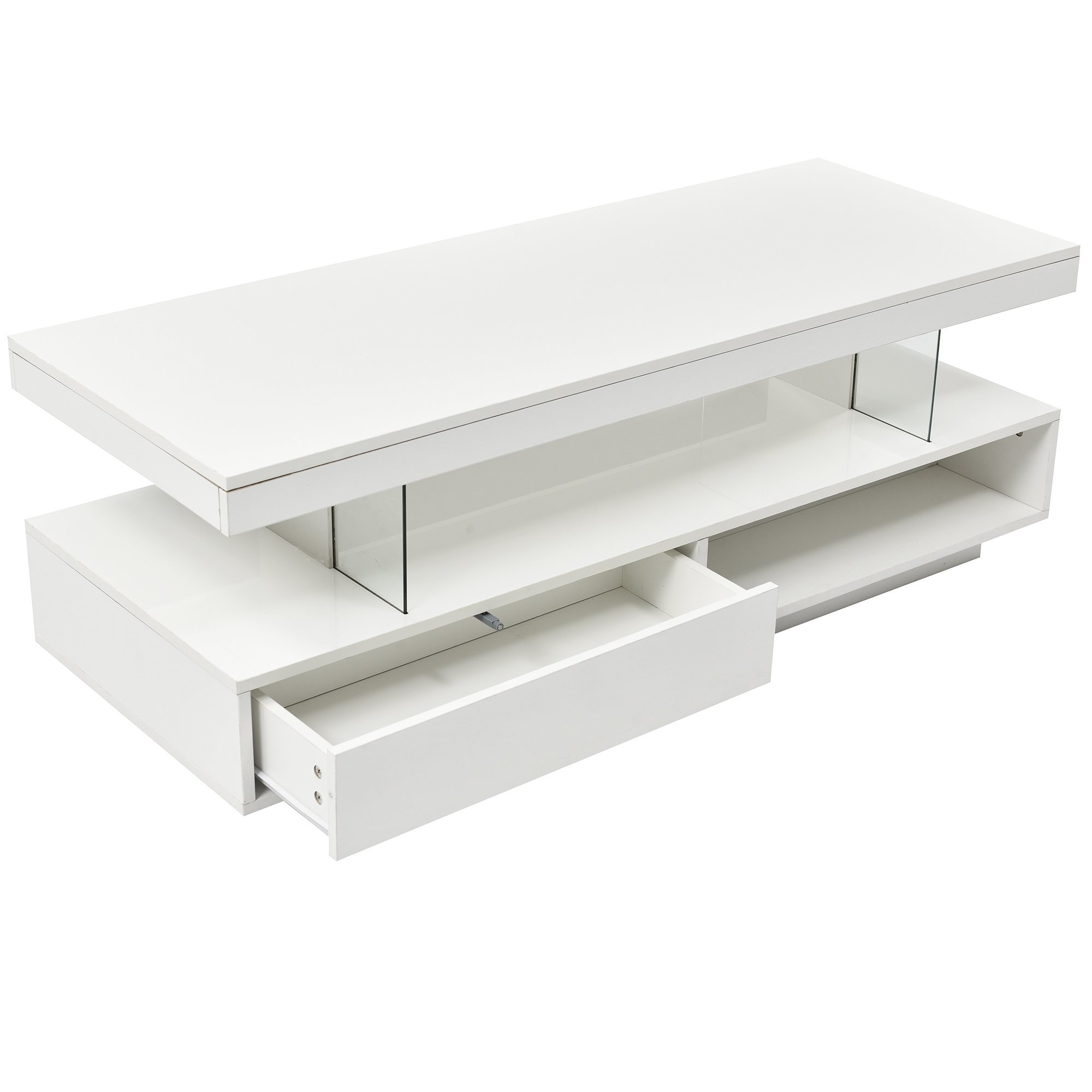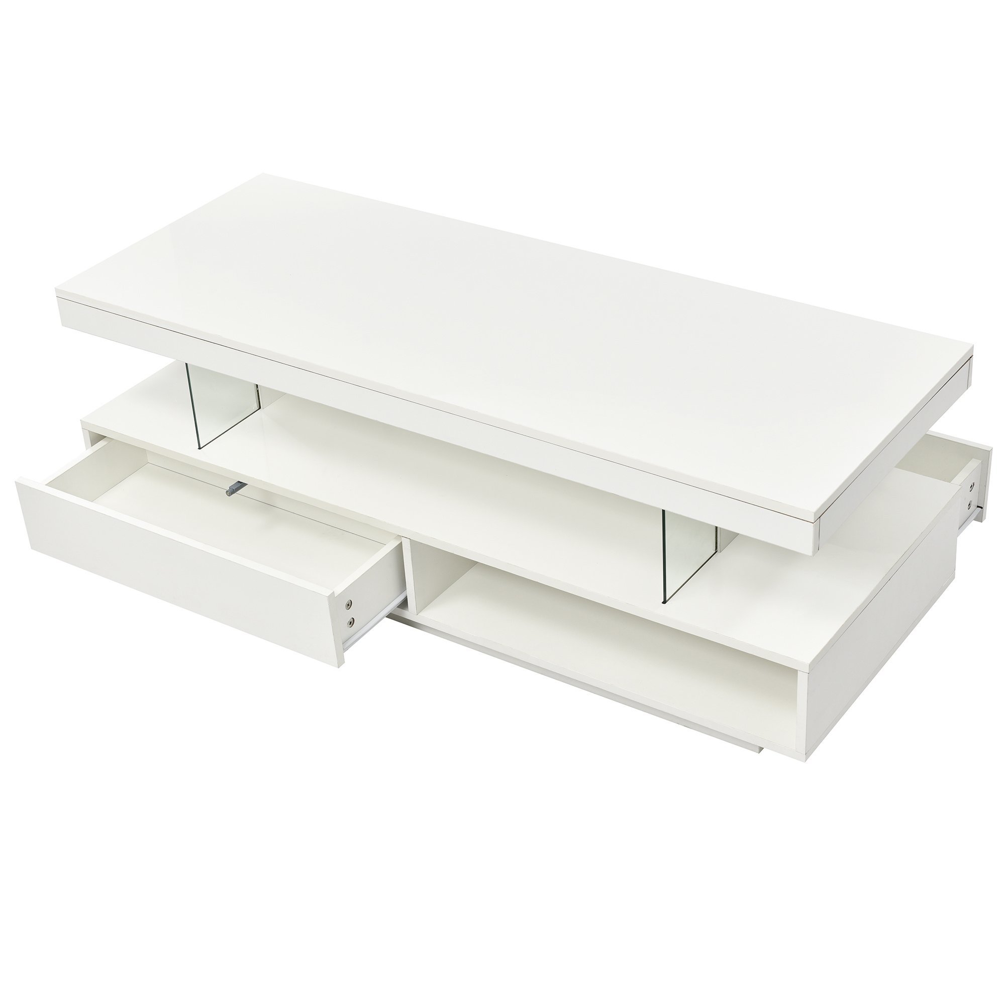 Our High Gloss Coffee Table is adorned with LED lights, whether you're looking for a warm and cozy atmosphere or a vibrant and dynamic ambiance, the LED lights can be easily adjusted to suit your mood or occasion.The coffee table comes with built-in storage compartments hidden beneath the tabletop. This provides ample space to store magazines, remote controls, and other essential items, keeping your living room clutter-free. When you're hosting a casual gathering with friends or enjoying a quiet evening alone, this coffee table brings a touch of modernity and sophistication to your living room.