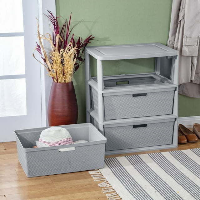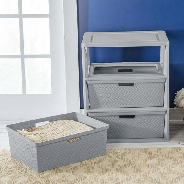 Home > Wide 3 Drawer Cross-Weave Tower Cement